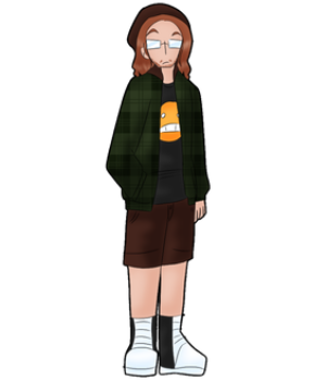 Andy's girlfriend. Uses a text-to-speech sound board to combat gender dysphoria. Love's her partner's personal space. Hatsune Miku's number one fan, probably.